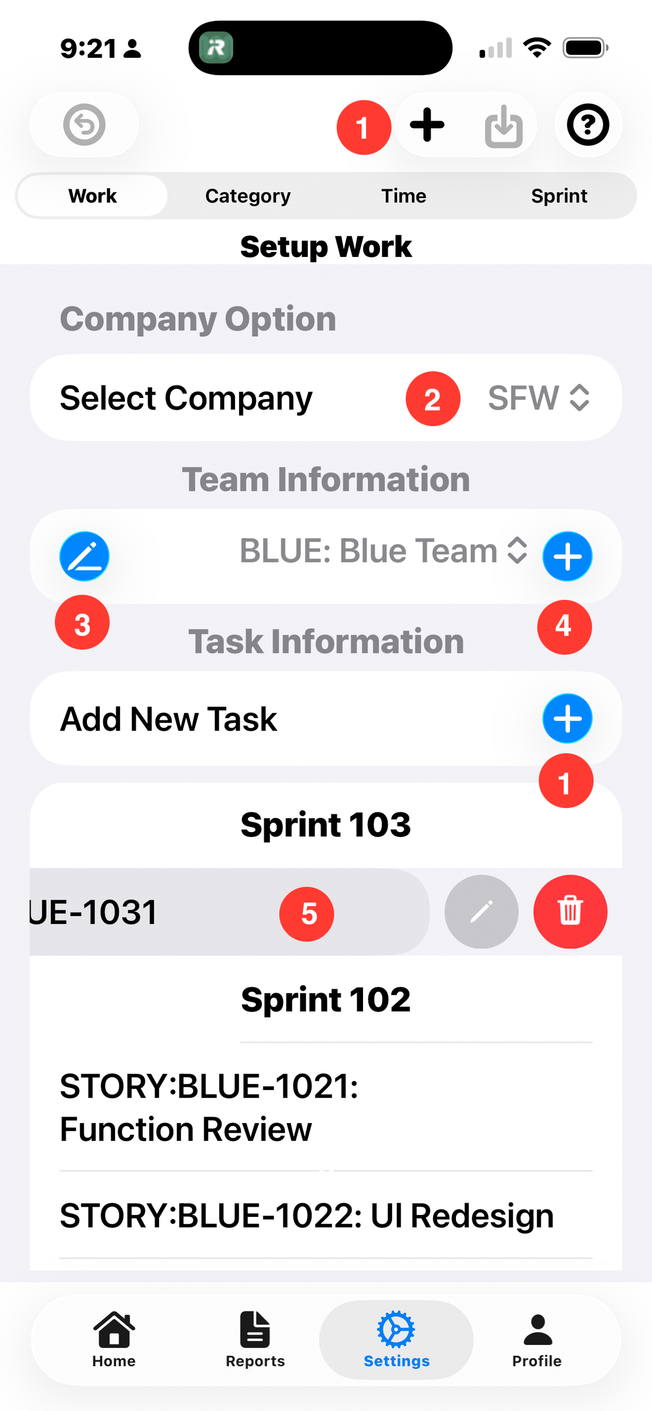 - 2. Sprint: Sprint number for the new task. Change the sprint number to create a new Sprint.