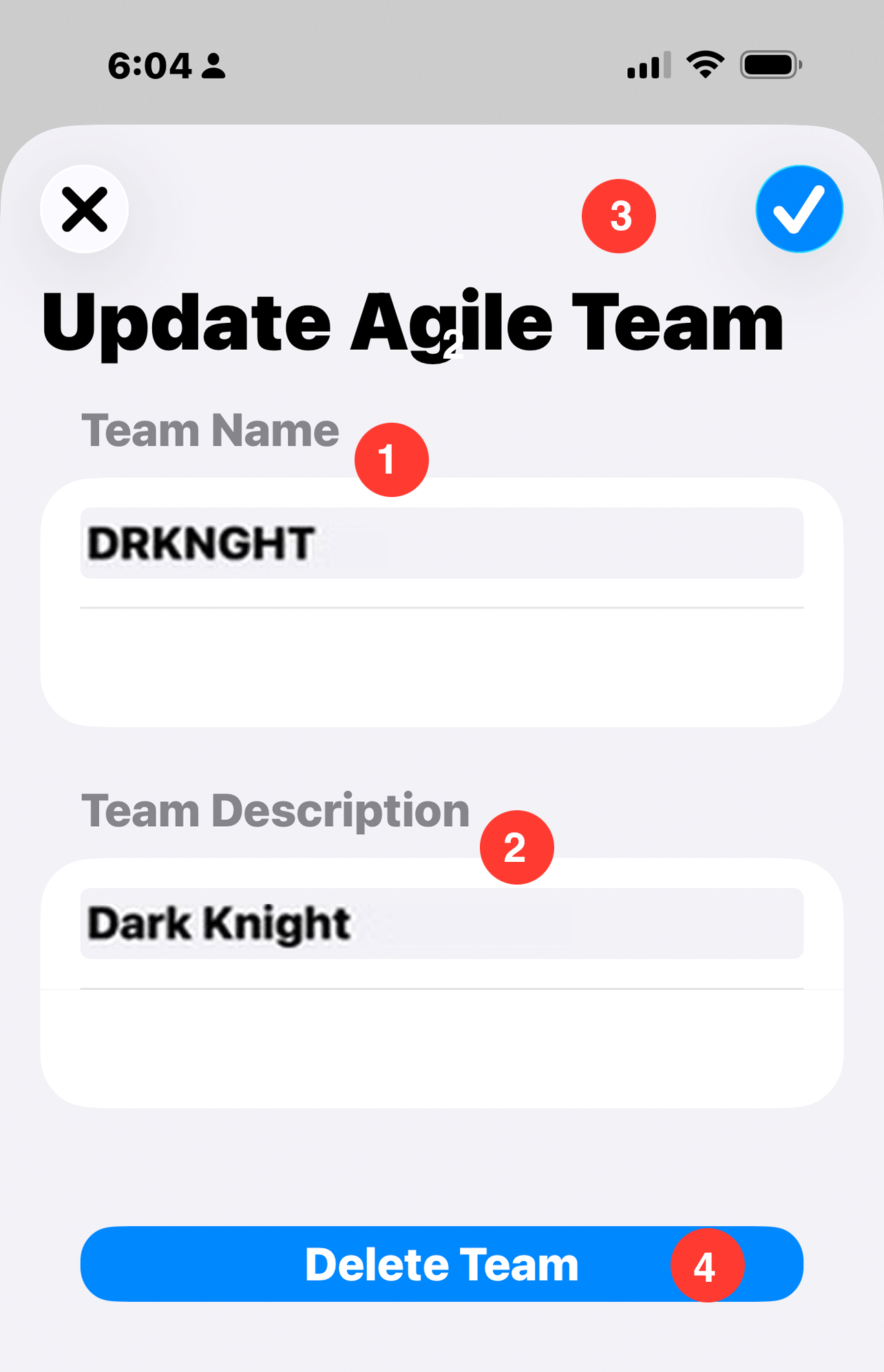 - 3. Pencil Button: Tap to edit and existing team name